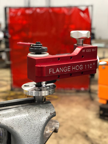GSI Machinery rents, sells and provides training for the FlangeHog flange facing machine from Esco Tool. This innovative easy-to-use flane facing machine allows most pipefitters to re-face damaged or corroded flanges in-place with minimal training and setup time. This is s hand-powered flange facer, so there is no need for air or electricity where you are working. This comes in handy for hard to reach areas or in fabrication shops that do not have an industrial-grade air supply. This flange facer has a mounting range of 1" - 10.39" ID with a 14" overall swing radius. Contact GSI today for demos, training, rentals and sales on this new cutting-edge tool!